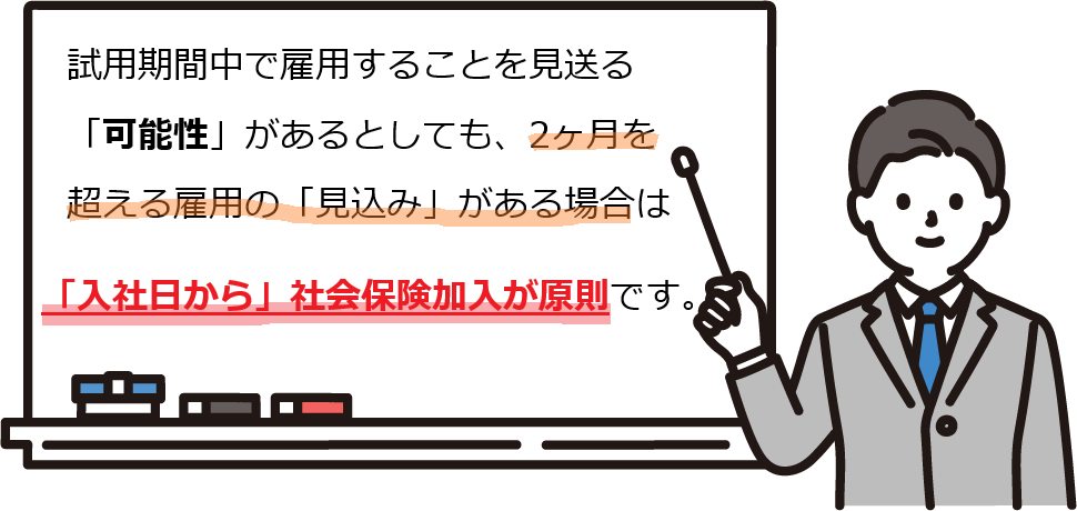 「社会保険加入は試用期間が終わってから」これはNGです。